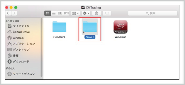"drive_c"のフォルダを開いた後"Program Files"を開き、引き続き"XM Trading MT4"を開きます。