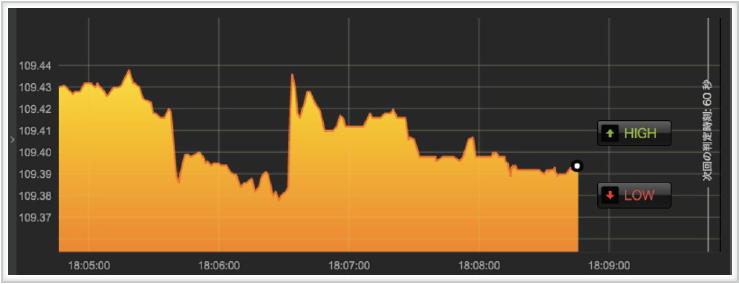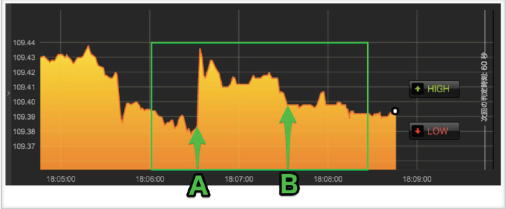 これはハイローオーストラリアのチャート(1分刻み)となりますが