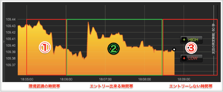 つまり、②の時間帯がエントリー出来る時間帯ということになります。